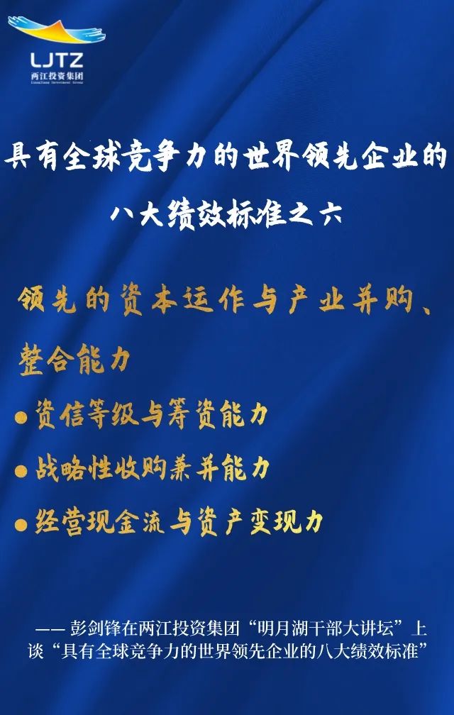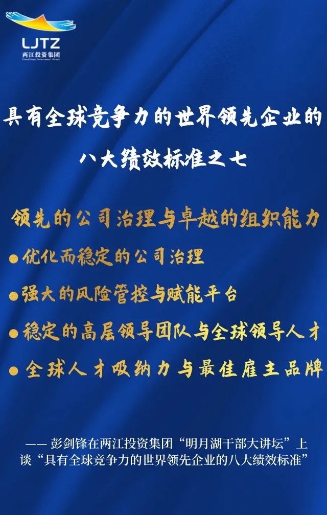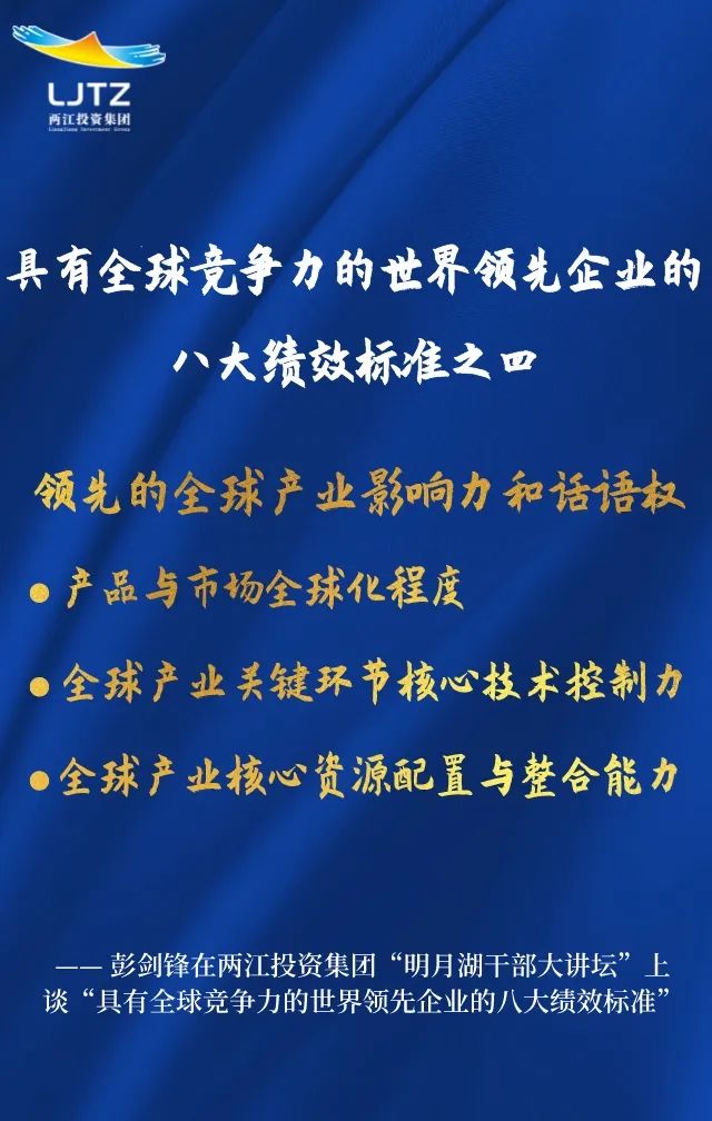 彭劍鋒教授在兩江投資集團“明月湖干部大講壇”上談企業文化建設金句系列之三:具有全球競爭力的世界領先企業八大績效標準