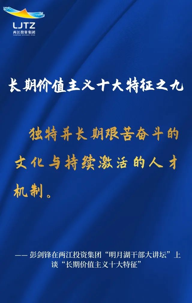彭劍鋒教授在兩江投資集團“明月湖干部大講壇”上談企業文化建設金句系列之四:長期價值主義十大特征