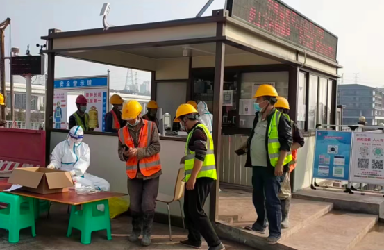 為減少人員流動,兩江置業(yè)公司水土項目部成員堅守崗位,與參建各方研究疫情防控方案,保障現(xiàn)場的安全生產(chǎn)。針對施工工地的特殊性,項目部組建了以總包單位牽頭,各參建單位分工負責的疫情防控組織機構(gòu),重點抓生產(chǎn)區(qū)、生活區(qū)的封閉管理、人員的閉環(huán)管理。