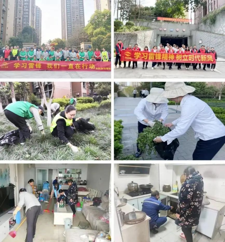 3月以來,兩江物業公司共計170人參加公區設施、公區環境道路清理、綠化帶垃圾清理、除雜草、撿垃圾等義務勞動,聯同社區志愿者上門為轄區孤老打掃清潔、檢查居家用電用氣安全、愛心義診等,切實把雷鋒精神轉化為實際行動,體現在日常工作中。
