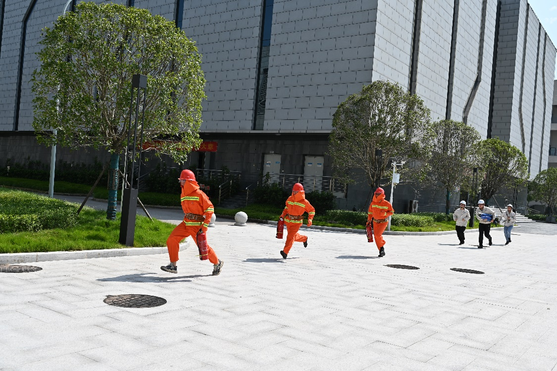 本次消防演練分為實操演練和消防知識培訓兩部分。實操演練涵蓋了火災發生、警戒、滅火救援、疏散引導等各個火災救援環節,其火警觸發點位于在動力樓柴油發電機室,為真實考察參練人員有序實施救援的能力,本次演練不預設具體演練情景文本,由參練人員根據消防預案和日常培訓內容,自行組織救援工作。演練過程中,值班人員2分鐘內到達現場確認火情,并及時啟動了消防廣播、滅火設備,組織人員疏散和搜救,微型消防站隊員于3分鐘內穿戴防護服到達現場,并使用滅火器、消火栓等器材進行滅火,演練的整體情況較好。