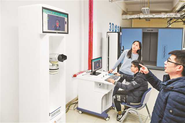 2月22日,重慶魯班機器人技術研究院有限公司,紅外醫用檢測機器人通過攝像頭顯示出被攝者的紅外熱像圖,并運用大數據分析得出體檢報告。 記者 張錦輝 攝/視覺重慶